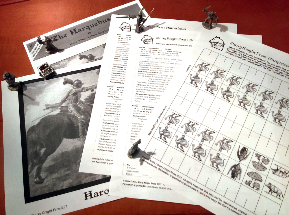 Herein you will discover the battle-ready Harquebusier character class, a master of early medieval firearms and a grenadier extraordinaire – ready to unleash a fusillade of destruction upon his or her foes! The authors have laid out an entirely new class which utilizes a well researched, thought out and detailed system of rules for the use of early firearms and grenades in a fantasy campaign.