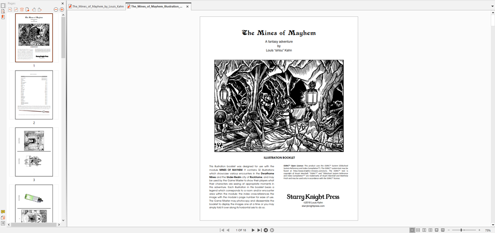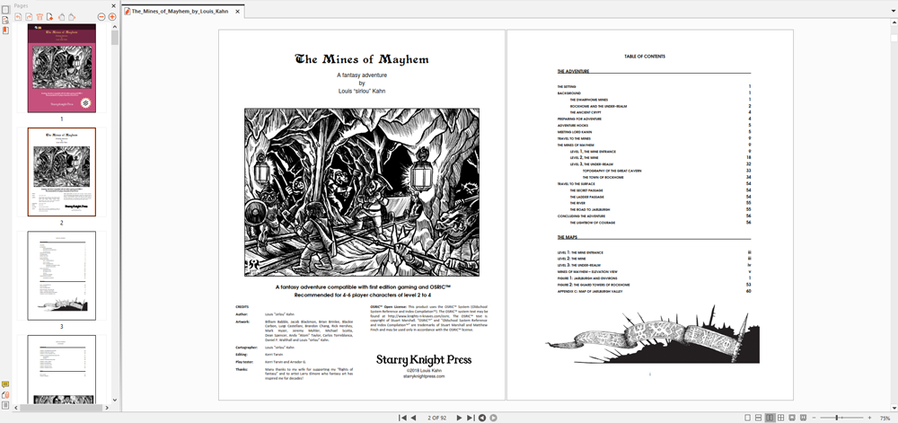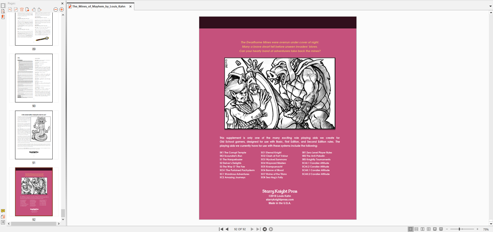 The Mines of Mayhem is my twenty-fifth book, my fourth adventure in the harquebusier "S-Series" of modules, my first book to include a an Illustration Booklet, and my third book set within the nation of Jarlburgh. It is 110 pages, including an Illustration Booklet to be shared with the players, and it took me a year to produce! It is a truly EPIC Old School dungeon crawl!