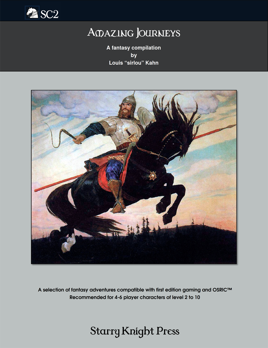 Amazing Journeys is my twenty-third book and my second book in the "SC-series" of adventure compilations. This megamodule combines our second set of four one-shot adventures for a very reasonable price! Your players will face a variety of challenges requiring multiple skill sets! This massive 76 page tome contains four complete adventures for 4-6 players of Levels 2-10.