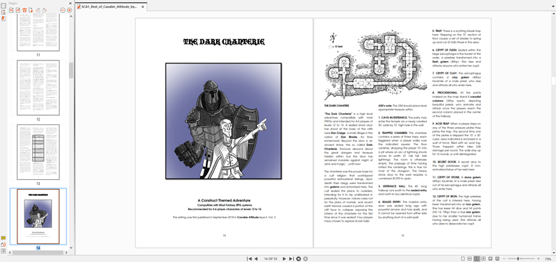 - THE DARK CHANTERIE: Your players will be exploring the ancient shrine of a golem cult, to uncover the secrets hidden within its dark halls. (For PCs level 12 to 16)