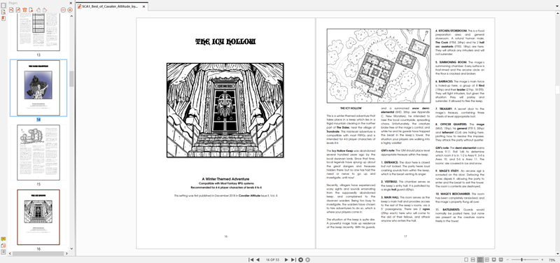 - THE ICY HOLLOW: In this winter-themed adventure the players are hired to investigate rumours of new occupants at abandoned dwarven outpost. (For PCs level 4 to 6)