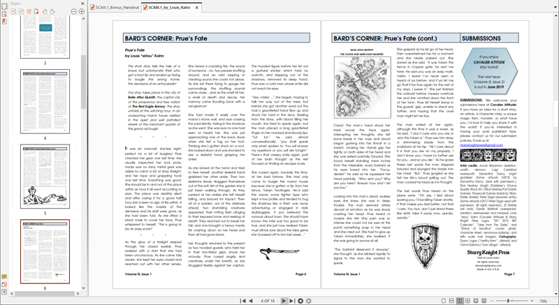 - Bard’s Corner: a feature showcasing fantasy fiction with an RPG theme, by myself and others. The story in this issue is entitled “Prue’s Fate".