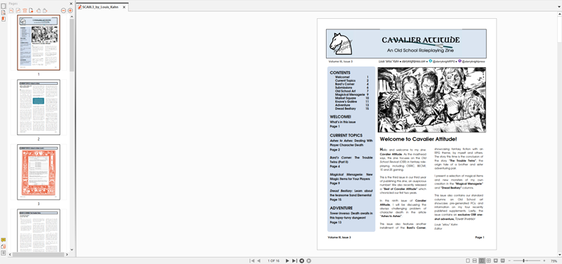 I am very pleased to announce the release of my forty-fourth supplement and the ninth issue of my Old School zine: Cavalier Attitude, Vol. 3, Issue 3. It is available for purchase right now in PDF format!