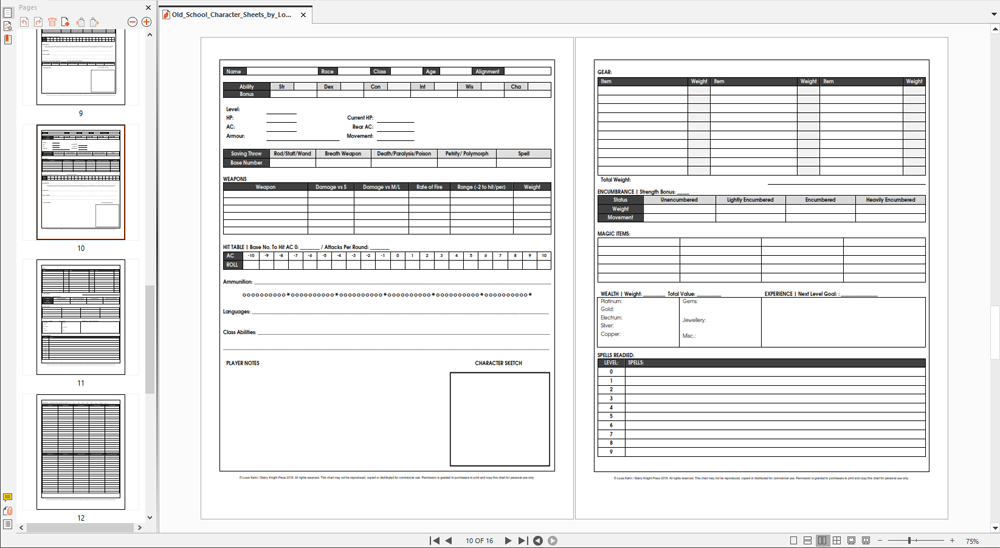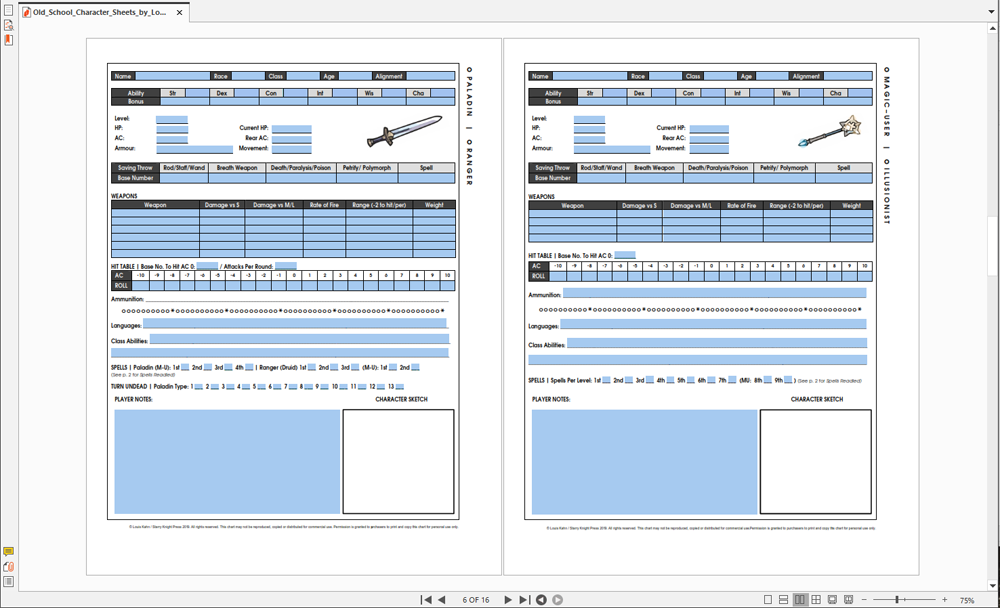 Old School Character Sheets