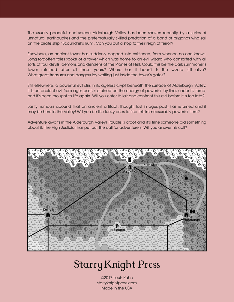 Adventure awaits in the Alderburgh Valley! Trouble is afoot and it’s time someone did something about it. The High Justiciar has put out the call for adventurers. Will you answer his call?