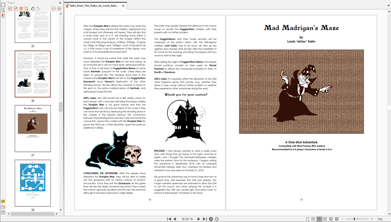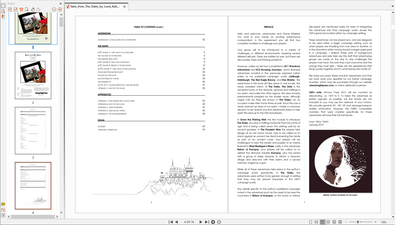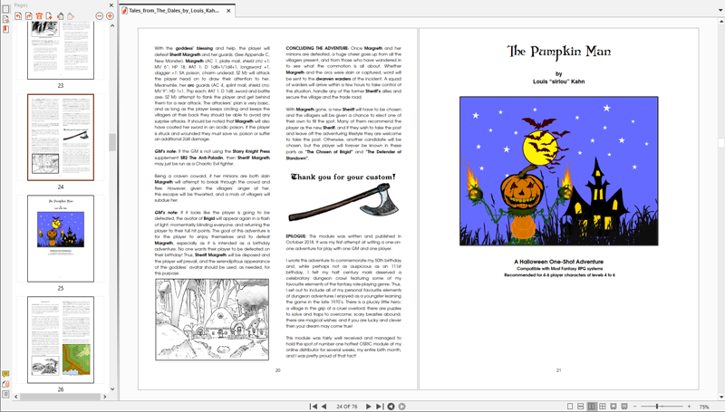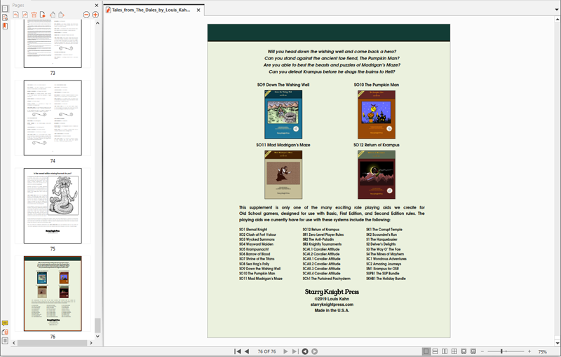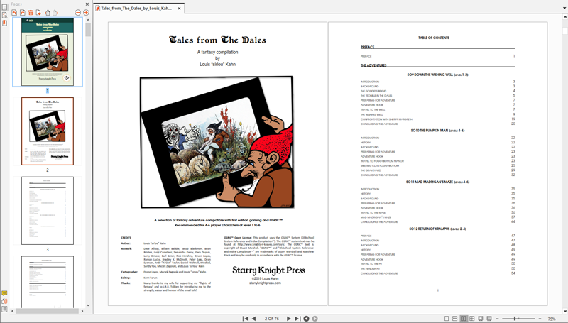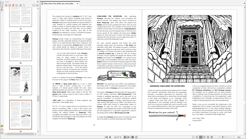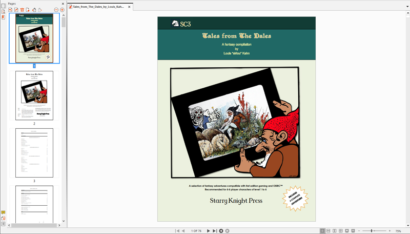 "Tales from The Dales" is my thirty-fourth book and my third book in the "SC-series" of adventure compilations. This megamodule combines our third set of four one-shot adventures (SO9-SO12), for a very reasonable price!