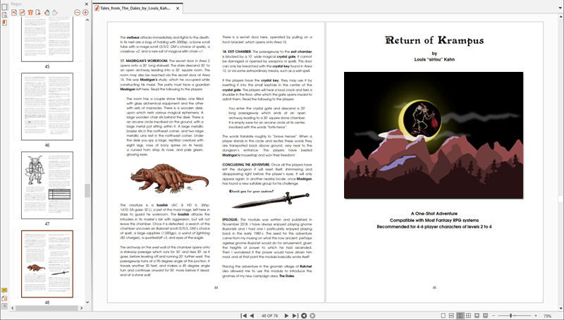This one is a bit different from my other two, however, as all four adventures take place in the newly revealed nation of The Dales, the ancestral home of dwarves, gnomes and halflings in my campaign realm! This massive tome contains four complete adventures for 4-6 players of Levels 1-6.