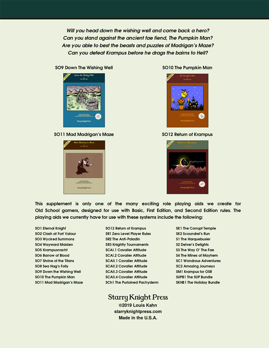 - In The Pumpkin Man the players take refuge at an old manor house, only to be called on to stand against an ancient fae fiend tormenting the family as part of an ancient curse.