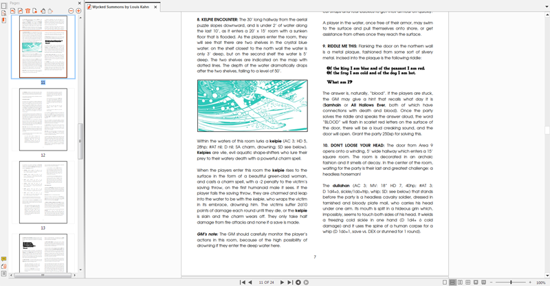 The mechanics of this dungeon are such that it would be simple for a GM to substitute in their monsters, or even randomly generate them on the fly with your favourite gaming manual, so that the dungeon could be reused again and again. (Just like Arawn does!)